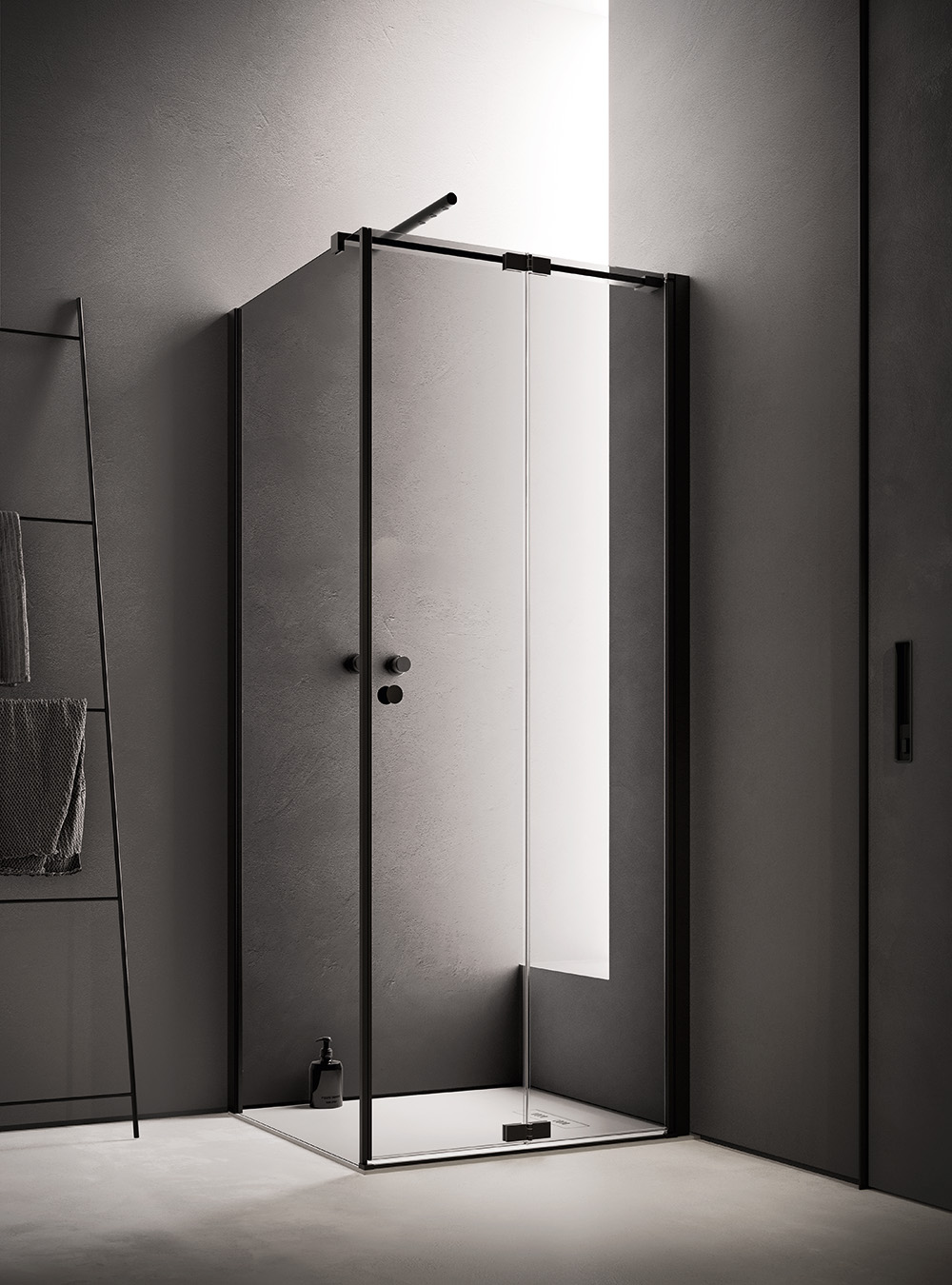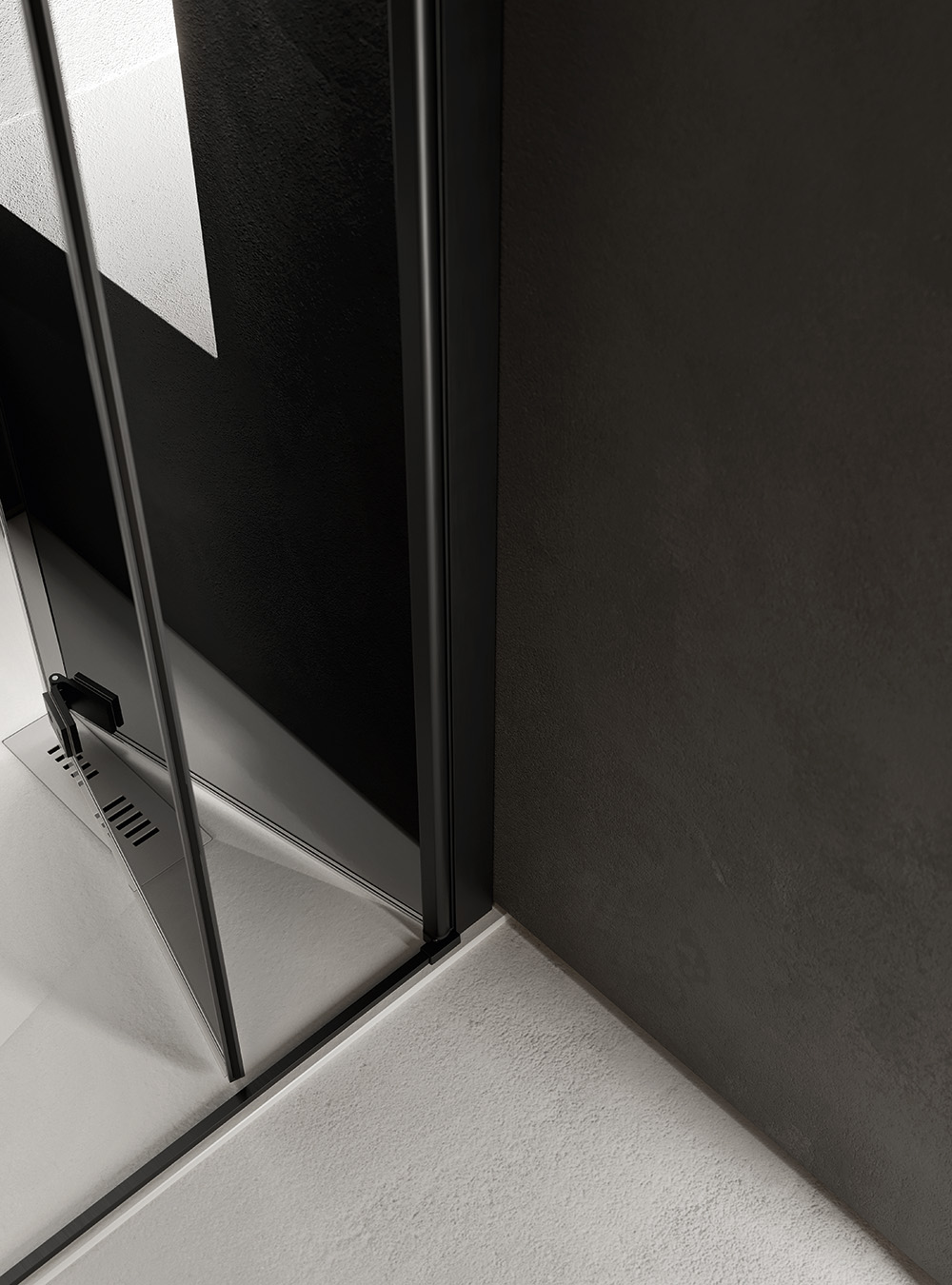Total packing of the door, minimal hinge matched with the shower enclosure