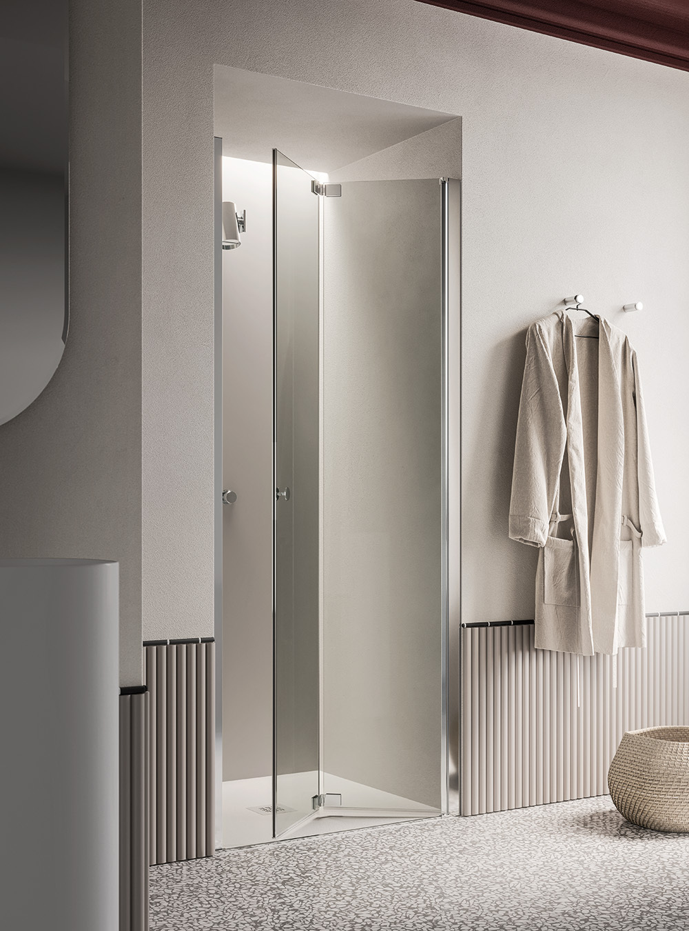 Total packing of the door, minimal hinge matched with the shower enclosure