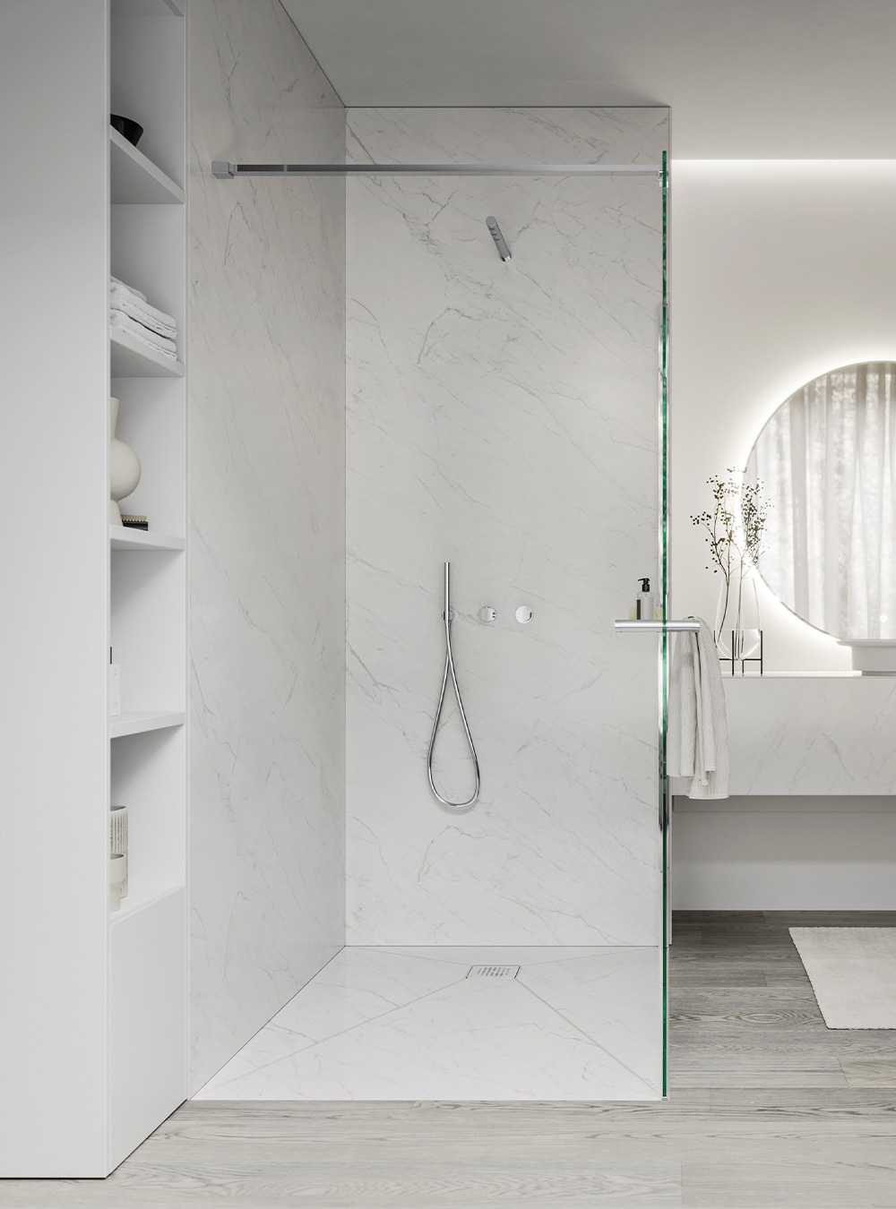 Accessory fixed on the glass: used as towel-holder on one side, and used as shelf on the other side.