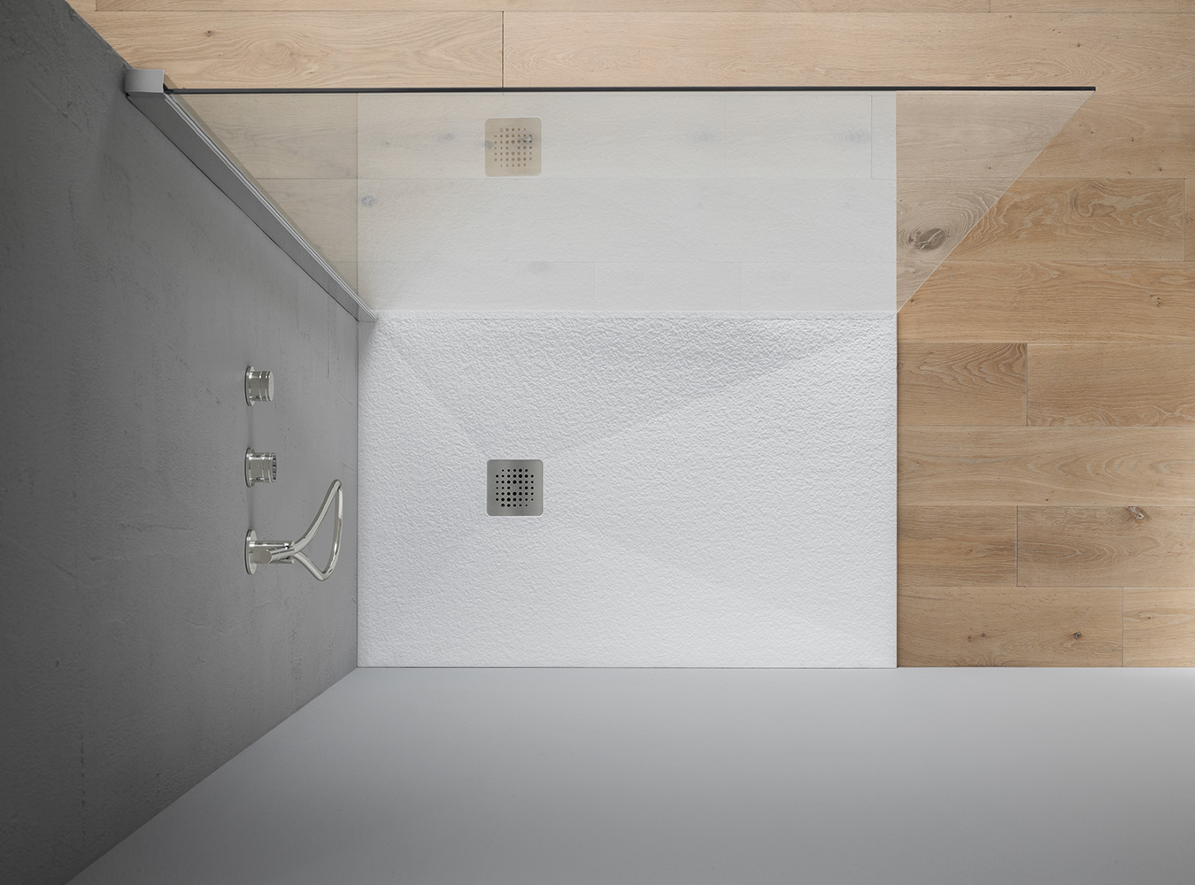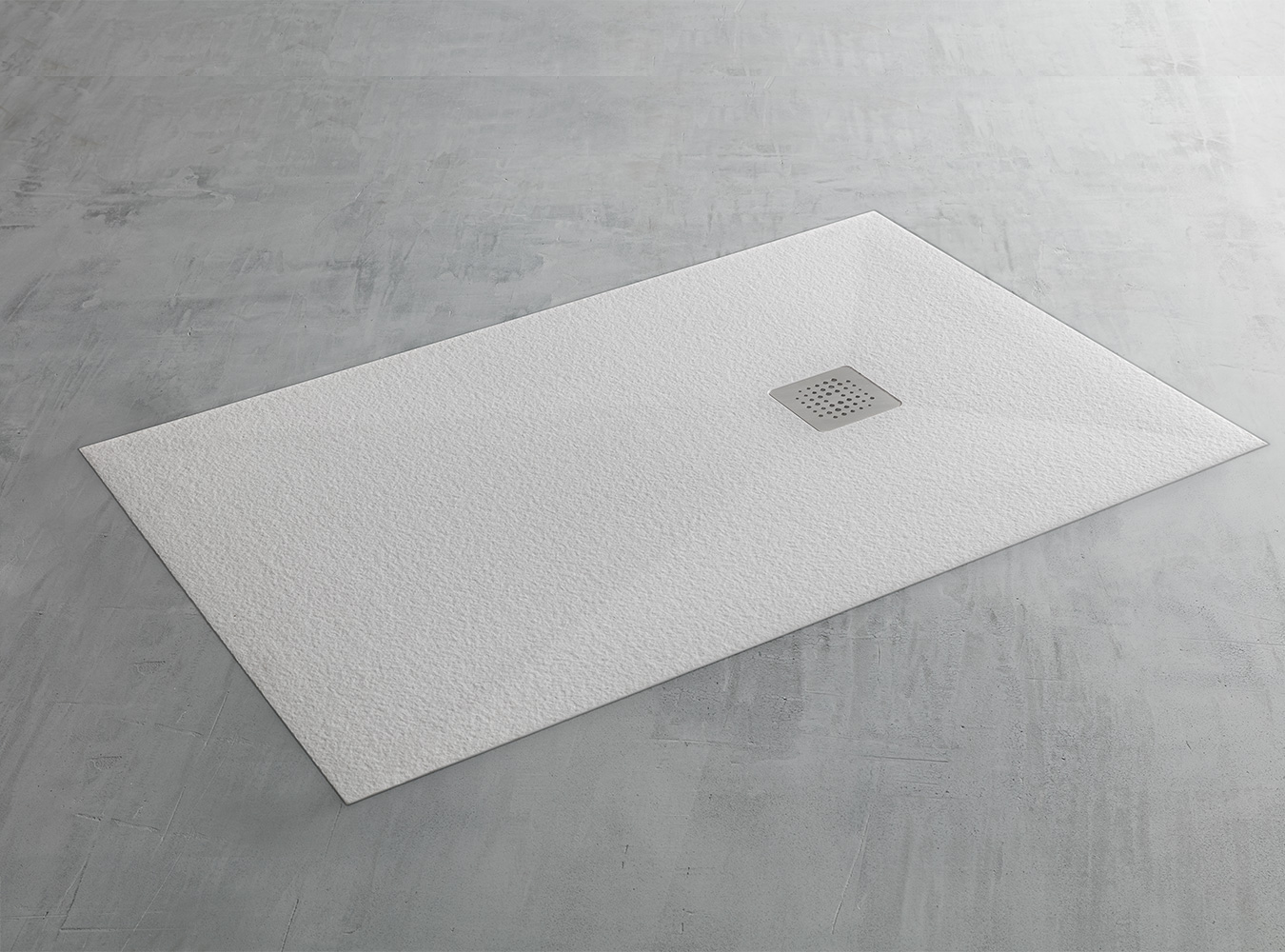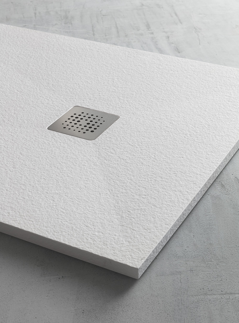 Simple and clean lines characterize the Feel shower tray by Ibra Showers which can be installed both in support, with visible textured edge, and flush with the floor, for a minimal effect. Made of Mineralsolid®, a material with a white finish and a stone-effect texture, the Feel shower tray is perfect for installation in both modern and classic bathroom environments. Its properties make it easy to restore and work on site.