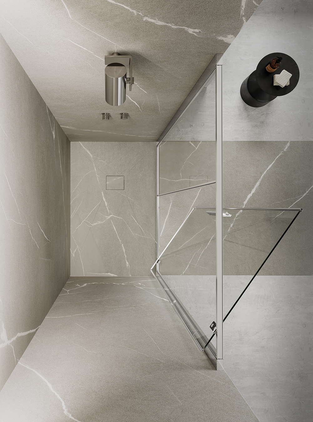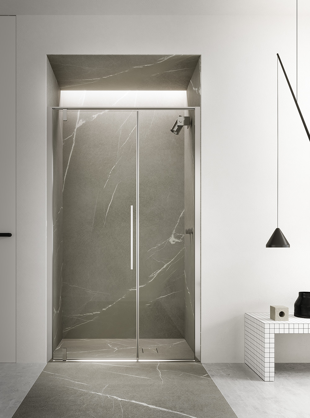 Pivot hinge, magnetic closing system inserted in the aluminium profile, reversible.