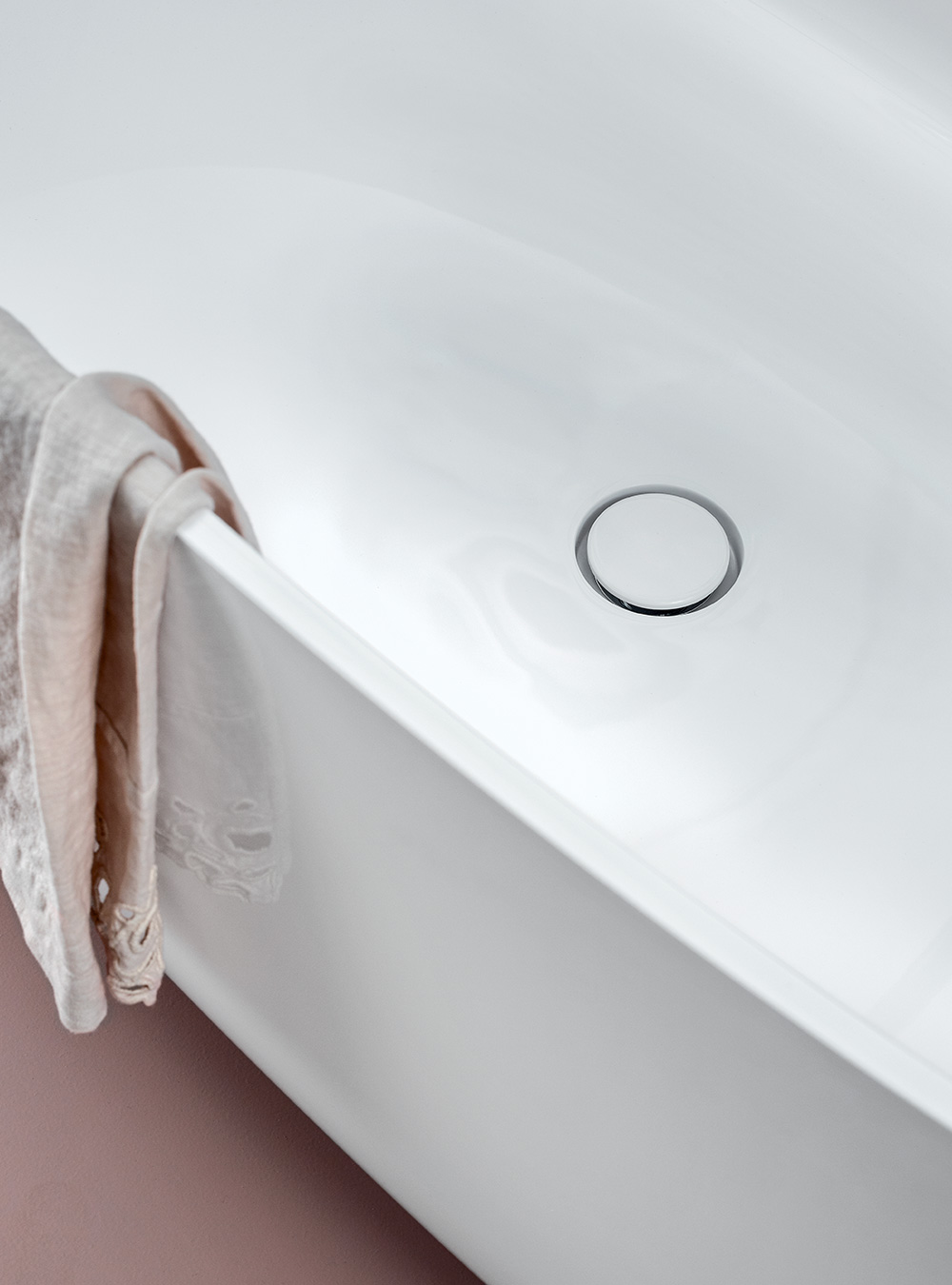 Available in two variants, Matt Tekno and Glatt Mineralguss, the freestanding Panier bathtub fits harmoniously into both modern and classic bathroom environments. Its soft but defined lines allow the Panier tank to have a water capacity of 370 litres. The perfect place to immerse yourself after a long day at work.