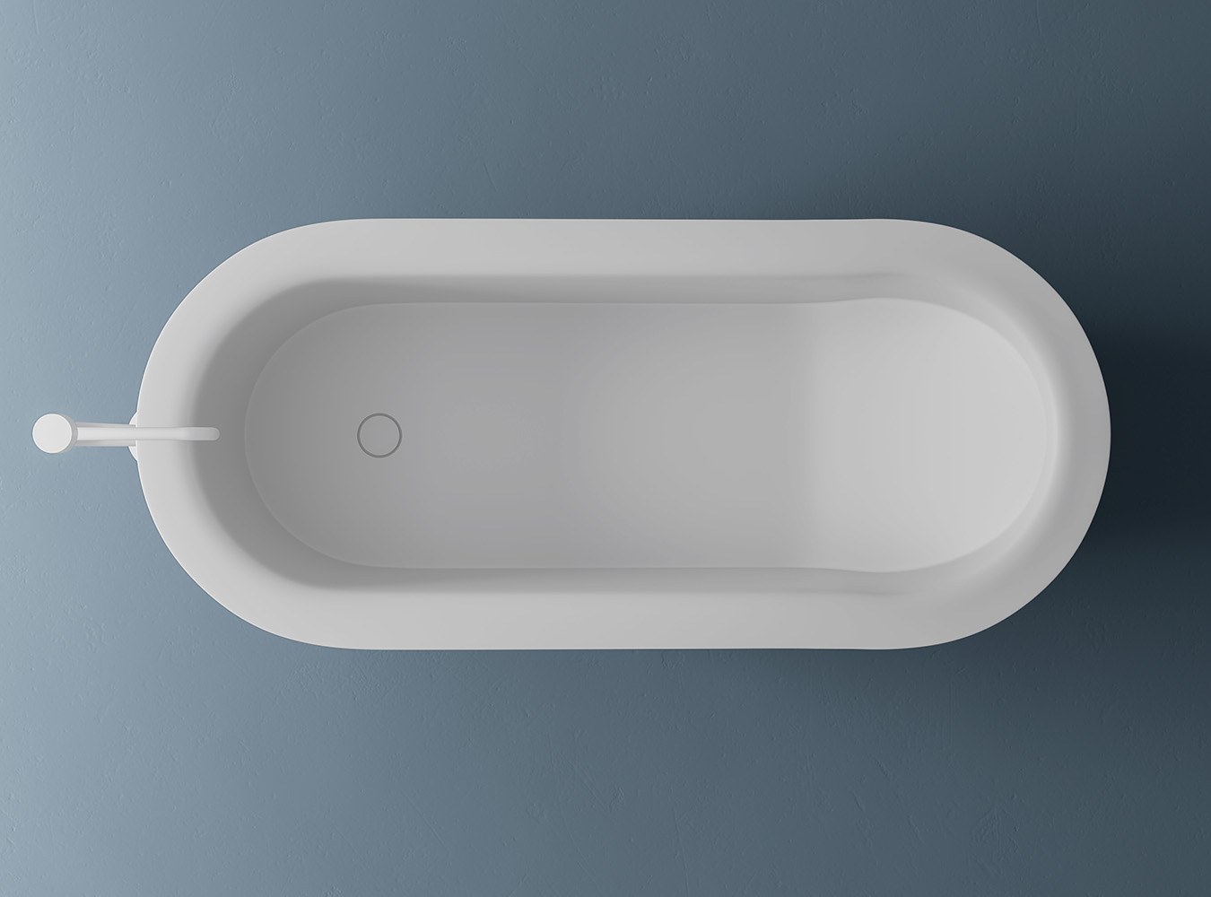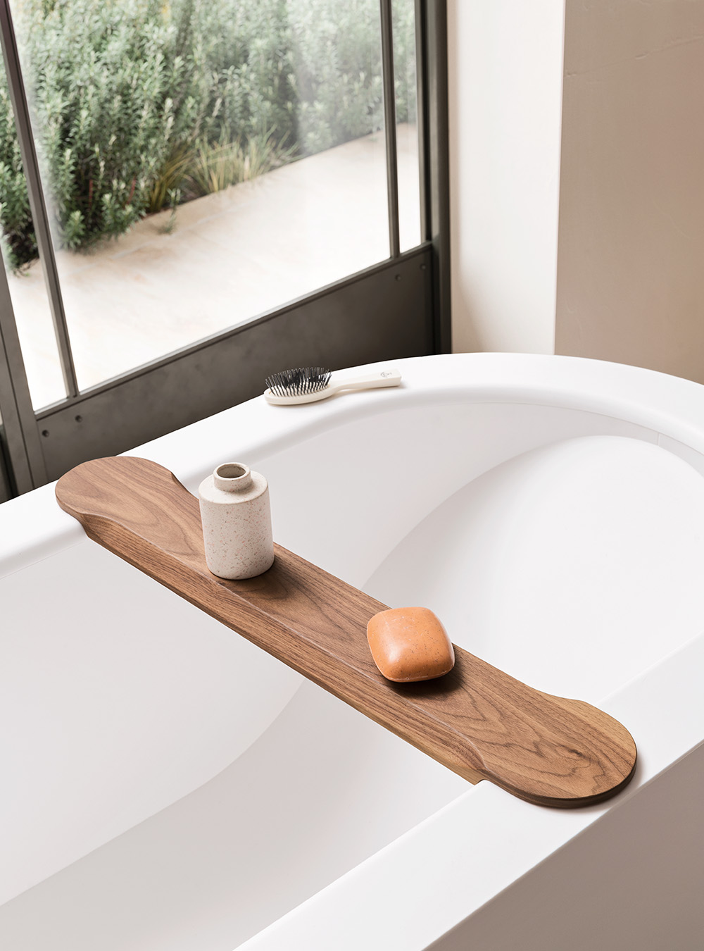 The perfect synthesis between essential lines and materiality, the Roman bathtub by Ibra Showers stands out for its high aesthetic value characterized by the soft-touch effect and the pleasant tactility guaranteed by the use of Matt Tekno Deimos. From the exclusive design signed by Garcia Cumini, the Roman bathtub finds its maximum expression when placed in the centre of the room, thanks to its exclusive lines that give prestige to bathroom furnishings. For greater practicality and functionality, the freestanding bathtub can be equipped with an elegant shelf in Canaletto walnut, for storing soaps and perfumes, and flanked by a series of accessories always signed by Garcìa Cumini.