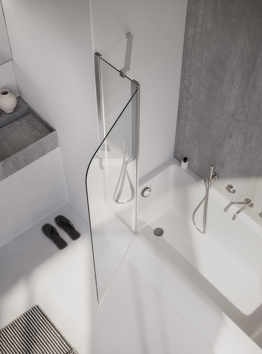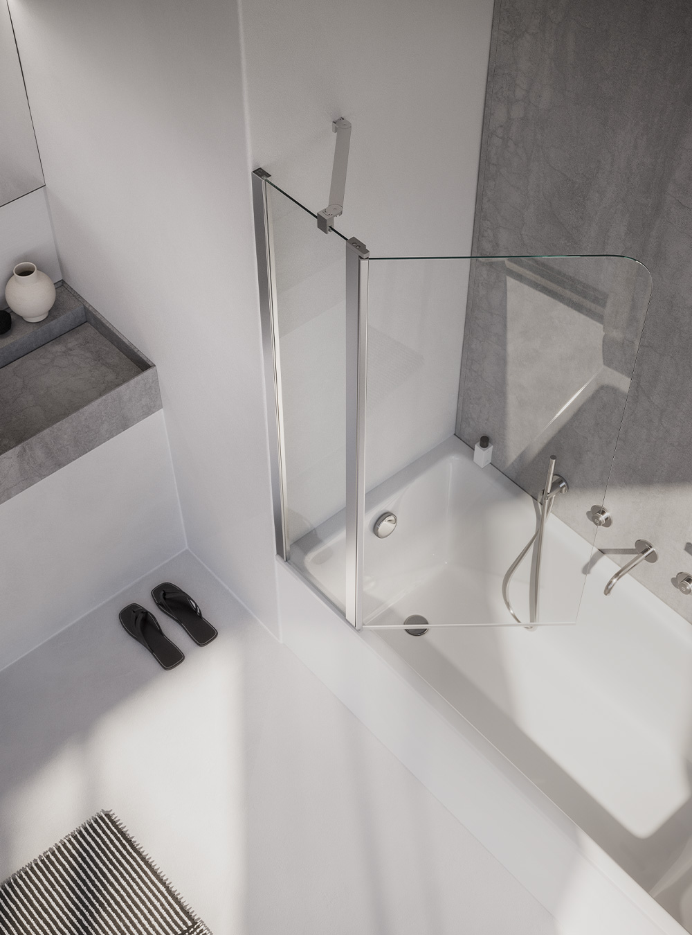Sopravasca corner with lifting mechanism while opening + fixed panel, available out of standard, 45° bar.