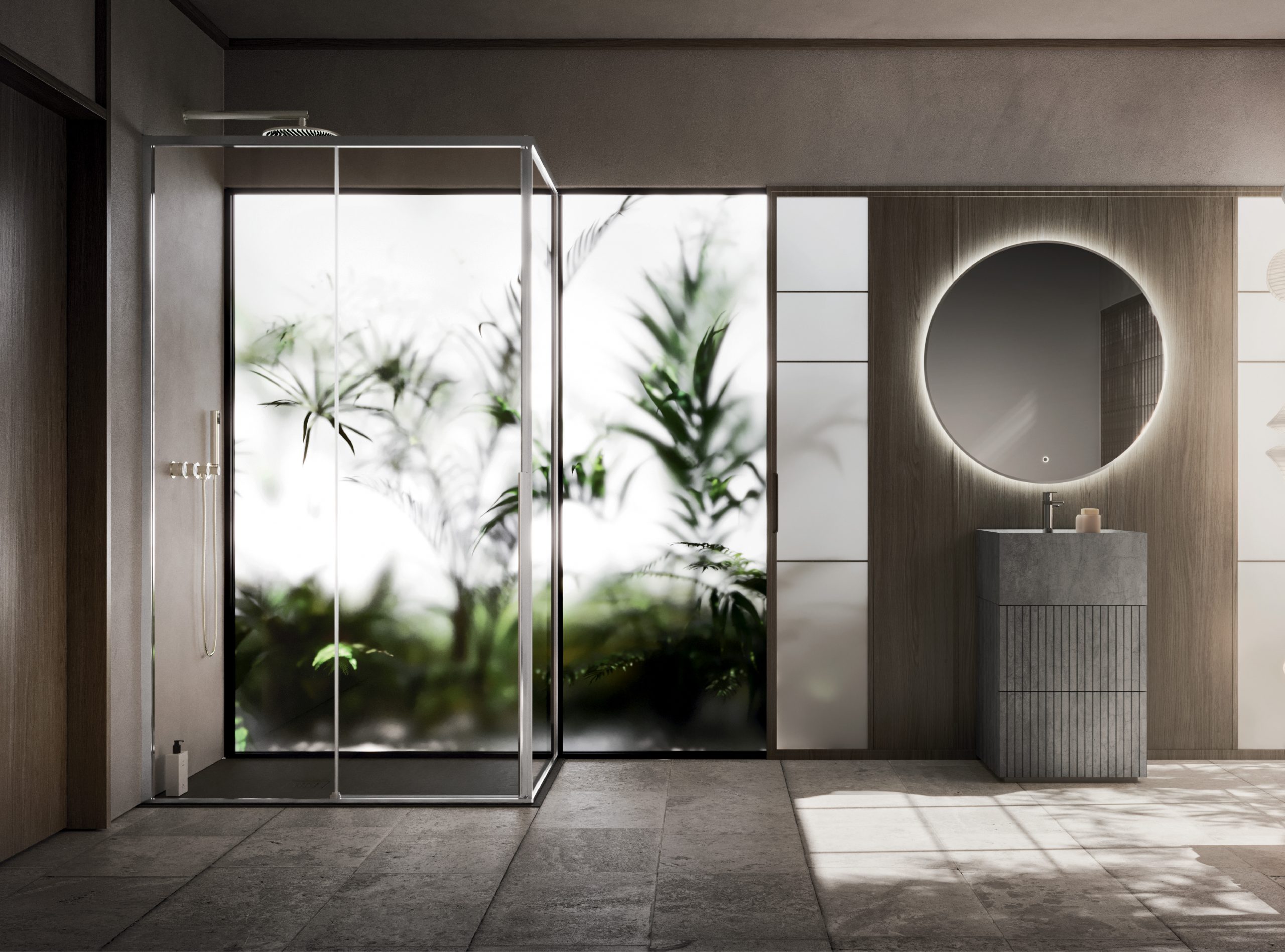 LEVANTE niche 1 sliding door + fixed panel + additional panel