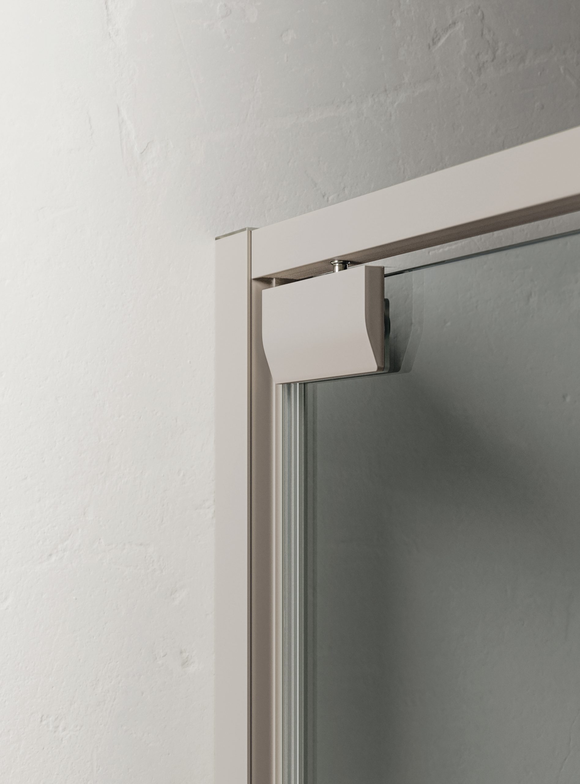The glass door is secured using eccentric joints that allow for easy and complete adjustment.