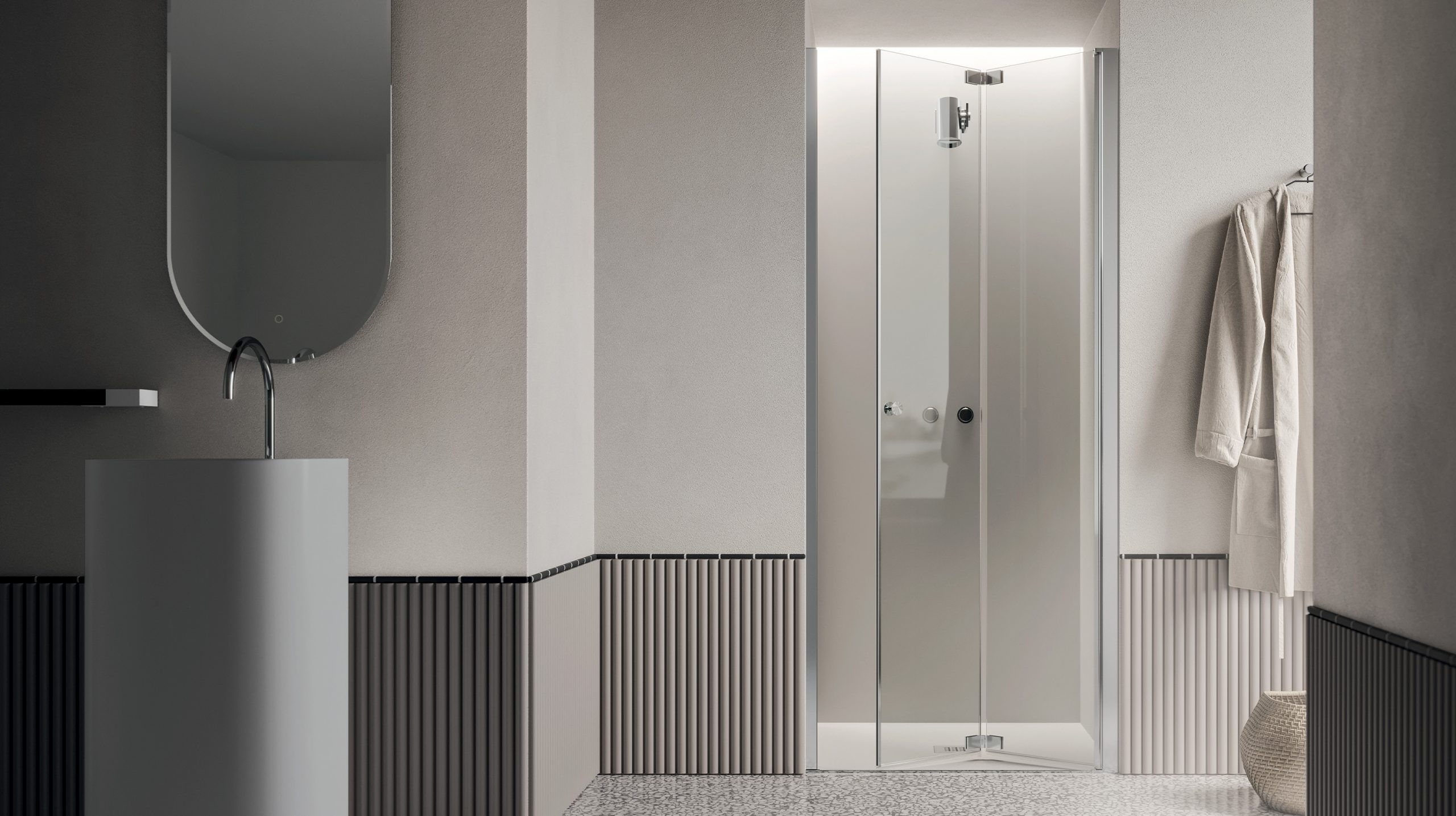 In order to furnish even the smallest spaces, Ibra Showers has introduced the folding Best model in its collection of shower enclosures, a dynamic and functional solution that allows you to make the most of even the smallest spaces. The hinge, in the same finish as the box, also ensures that the door is fully enclosed without giving up on a minimal design.