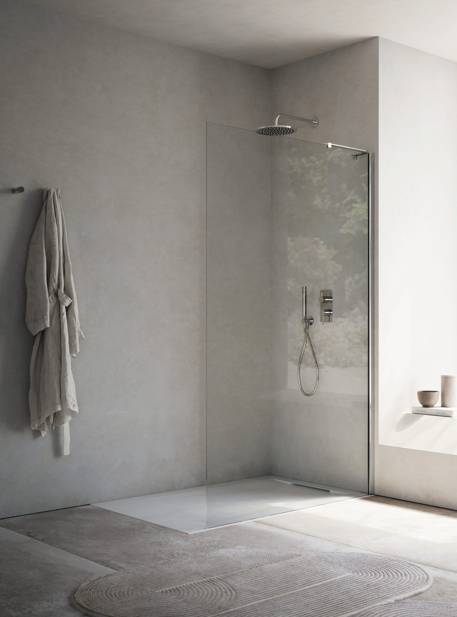 Uniko is the innovative walk-in shower enclosure designed to offer ultimate aesthetic and technical flexibility. Defined by a minimalist design, the system features a universal frame compatible with both 6 mm and 8 mm glass thickness. The single-panel configuration is enhanced by the Ibra stabilizer range, specifically engineered to meet every architectural requirement. With a variety of configurations available – ranging from ceiling-mounted supports to angles wall-to-glass solutions – Uniko ensures a seamless, bespoke integration into any bathroom environment.
